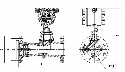 流量計的外形尺寸如圖3所示,圖中未注尺寸列于表1中,流量計采用法蘭連接方式,法蘭尺寸執行GB/T9112~9113-2000標準。
