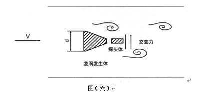 所以通過檢測旋渦分離頻率即可測知管道流體的流量。見圖(六)